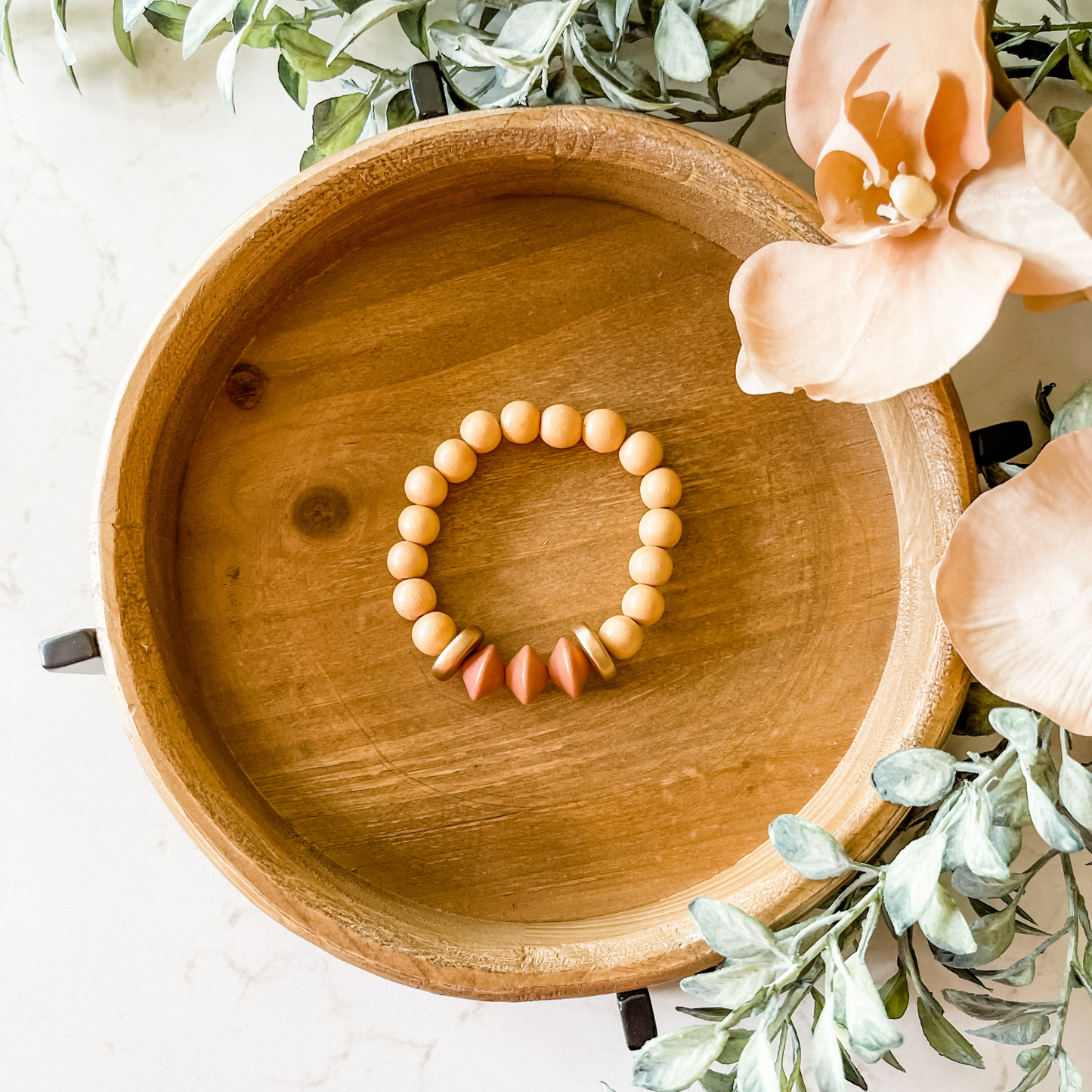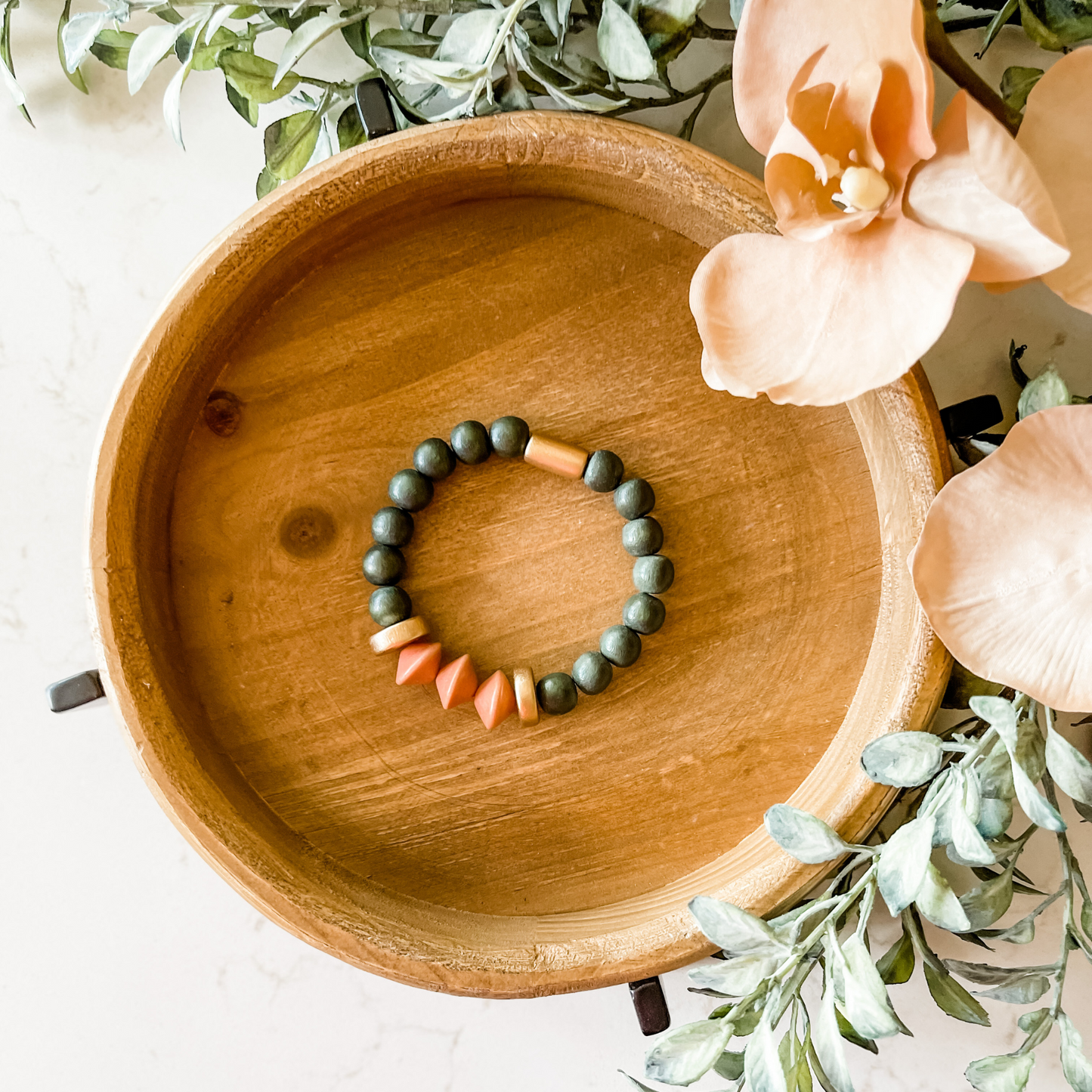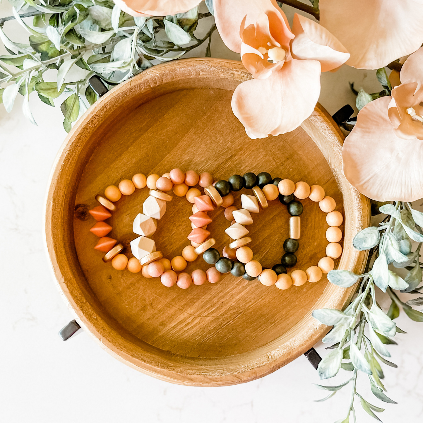 The Autumn Boho singles are a perfect combination of neutral and warm wooden beads that are great to mix in with your favorite bracelets or bangles or stack them high together! Each bracelet features natural wooden beads and wooden bicone or diamond accents for a stylish autumn flair!
