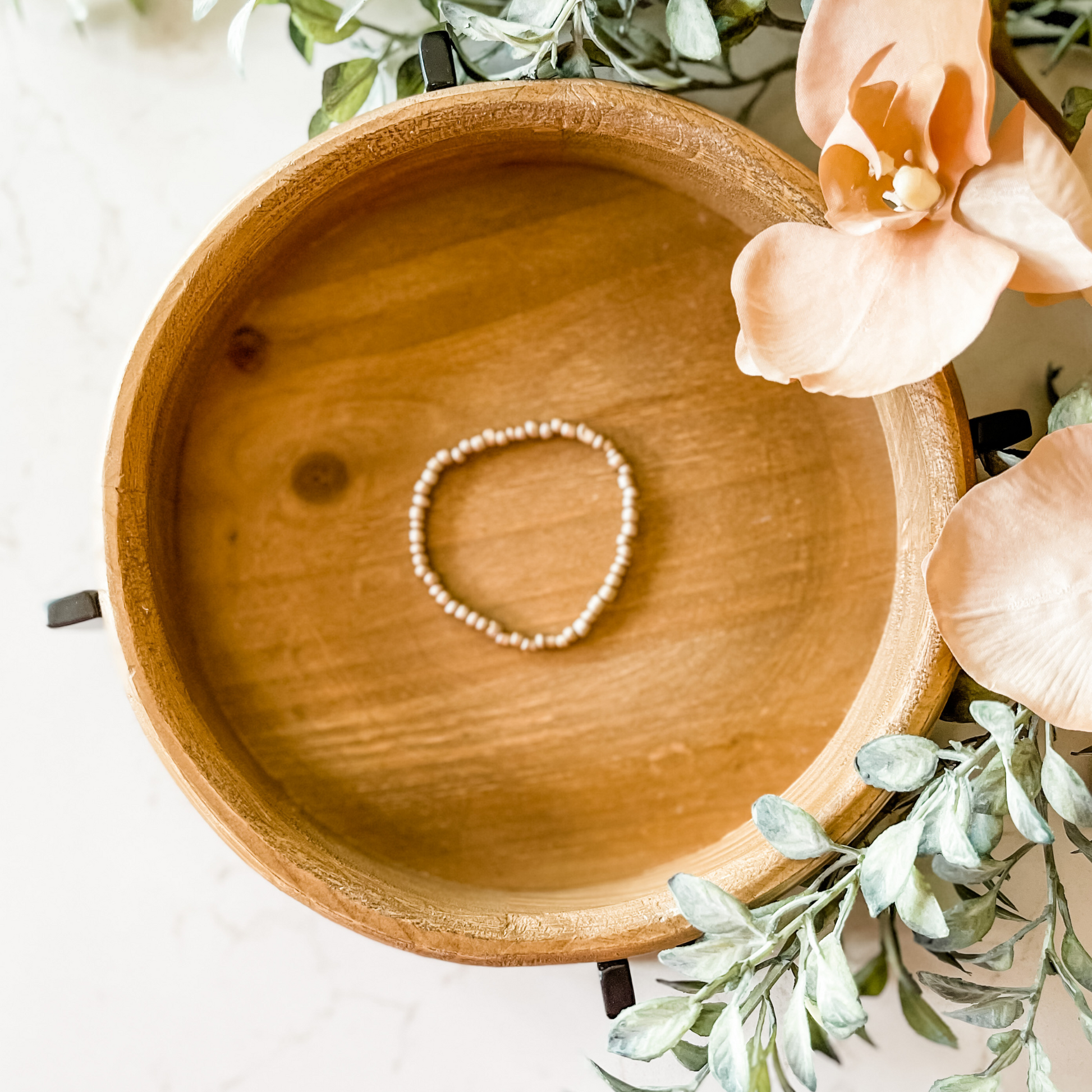 The Autumn Trees stack is a beautiful mix of amber, cream, forest green, warm wood tones and golden accents. Comprised of natural wood, metallic seed beads, acrylic tubes and java glass beads this neutral fall stack of five is the perfect way to spice up any outfit and can be worn so many different ways!