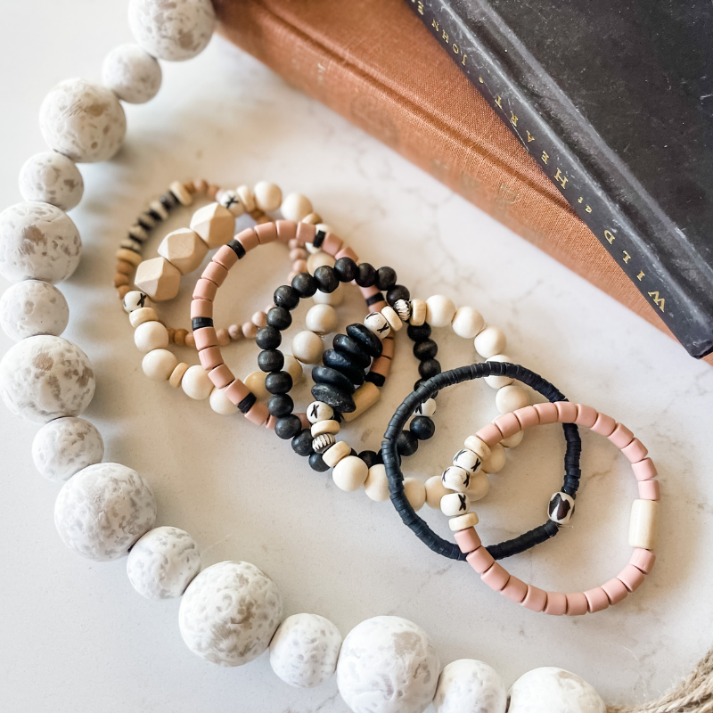 The Barista is a stylish and neutral stack that you can mix and match to go with everything! It's a fun mix of sizes, styles and textures and with complimentary neutral tones (white, black and pinky nudes) this stack screams hipster coffeehouse in the best way possible!